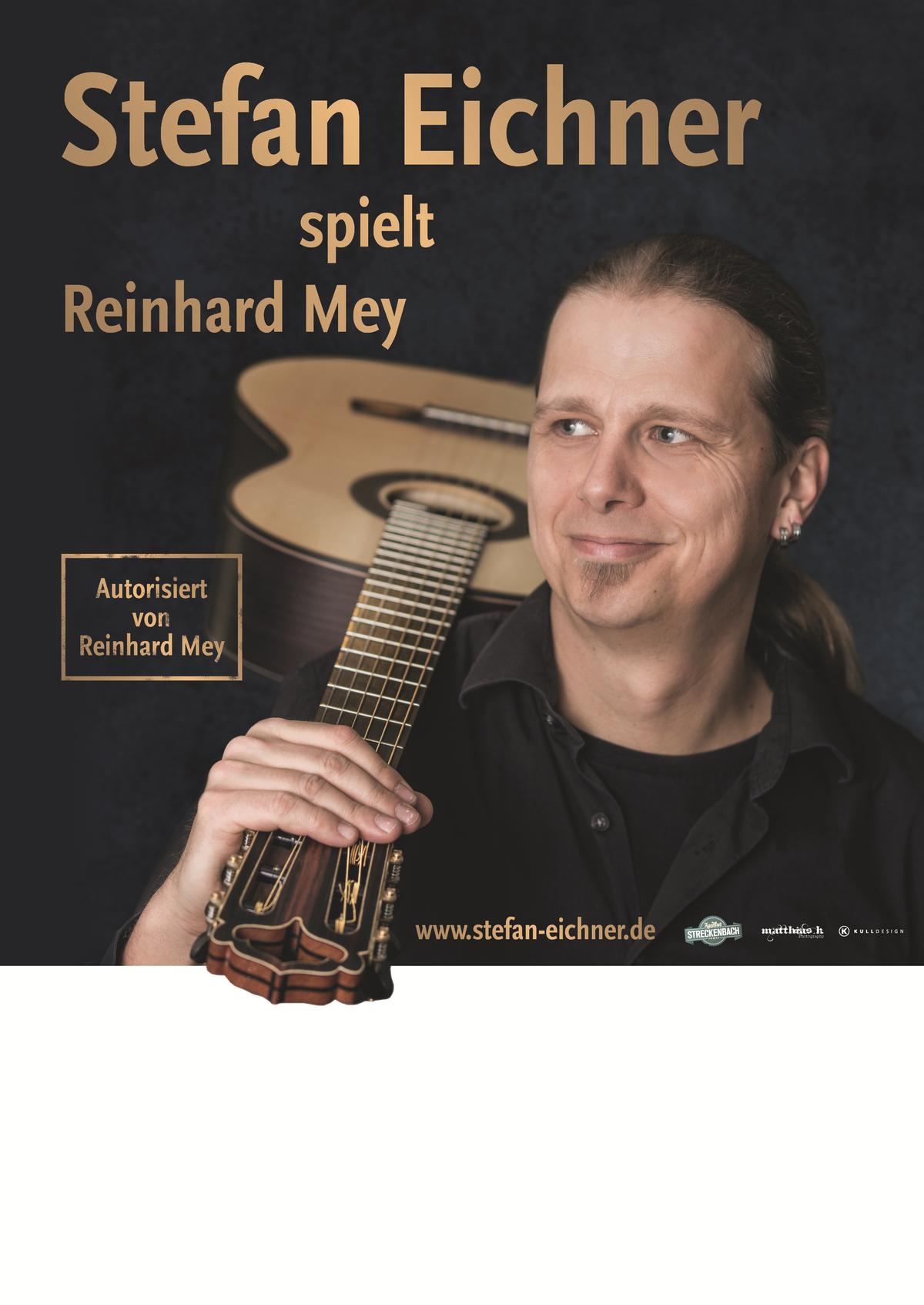 Stefan Eichner hat sich in nur zwei Jahren mit seinem Reinhard-Mey-Abend bundesweit einen sehr guten Ruf erarbeitet. Presse und Publikum sind sich einig: Wenn man die Augen schließt, dann IST Stefan Eichner Reinhard Mey! Wer das Original - den "MEYster" - schon einmal selbst live erlebt hat, wird dessen Machart auch in Eichners Programm definitiv wiederfinden: Das Gitarrenspiel, die Stimme, die Moderationen - alles verblüffend ähnlich und dennoch mit eigener Handschrift.
