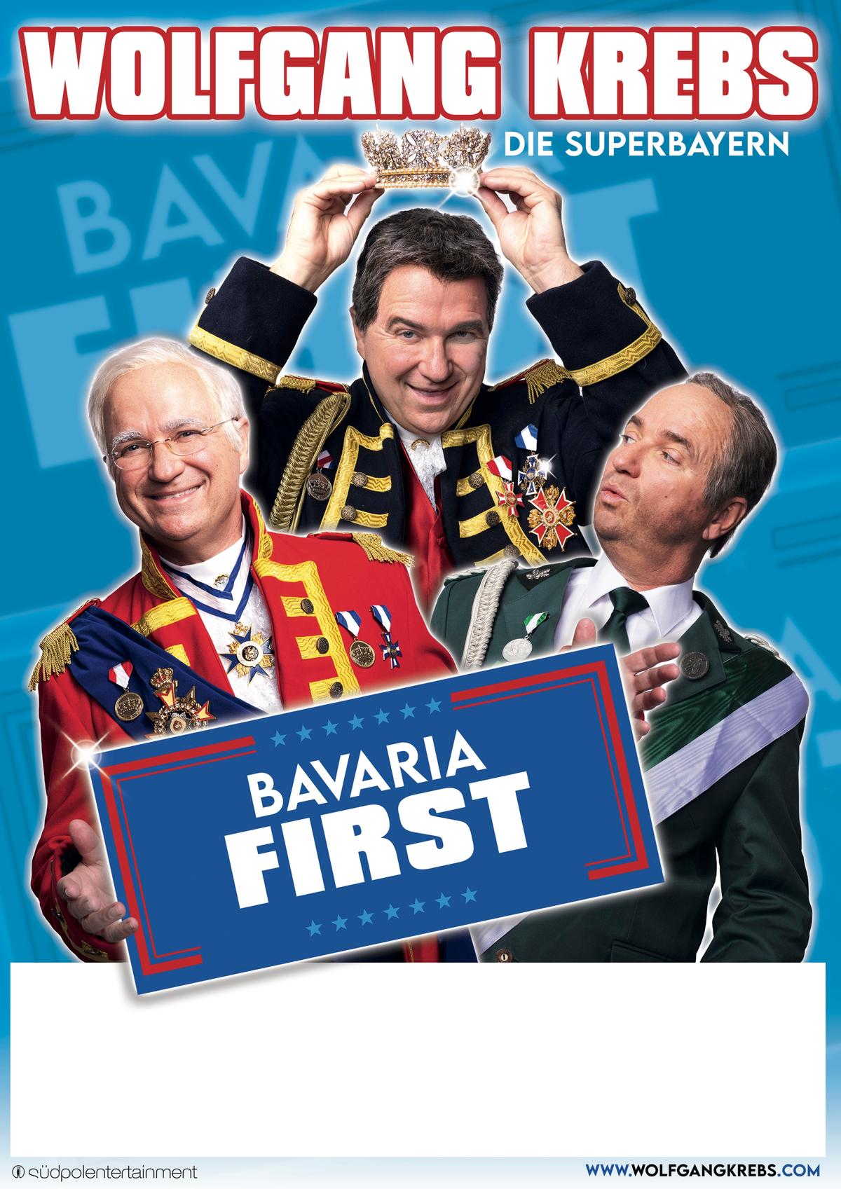 Bayern liebt DICH! Ist ein aktuelles bayerisches Kabarettsolo mit Botschaften und Botschaftern rund um den Medienzirkus von und mit Wolfgang Krebs, der wie immer ganz alleine auf der Bühne steht, und zwar in ganz vielen verschiedenen Rollen.
